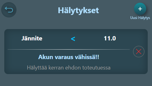 Nyt saat ilmoituksen kun jännite laskee alle 11.0 Voltin