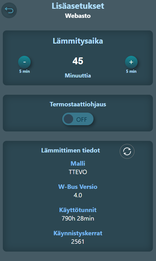 Kaikkien Etäbox ominaisuuksien lisäksi Etäbox W-Bus versiolla Ohjaat ja ajastat myös W-Bus ohjattuja Webasto lämmittimiä